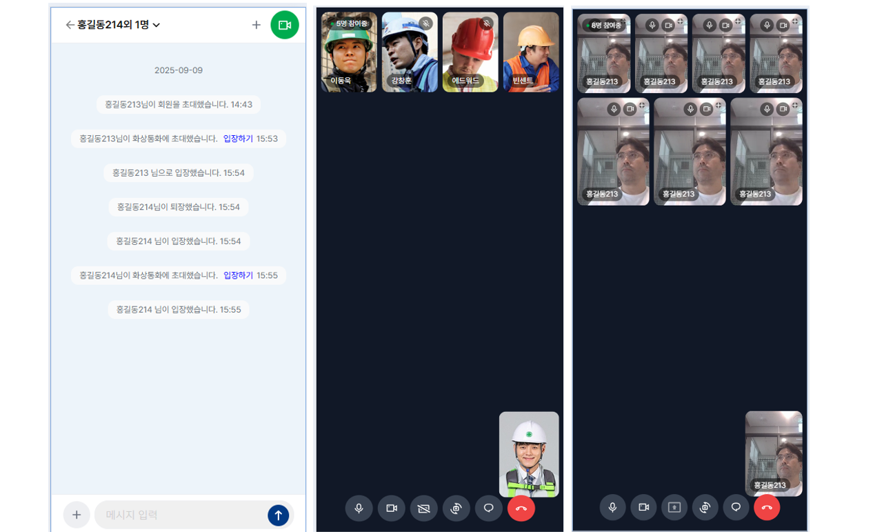 한수원 건설현장내 원할한 실시간 소통과 협업을 위한 다자간 화상통화 및 채팅 솔루션 하이브리드앱 방식으로 서비스를 현장 디바이스를 통해 제공합니다.
